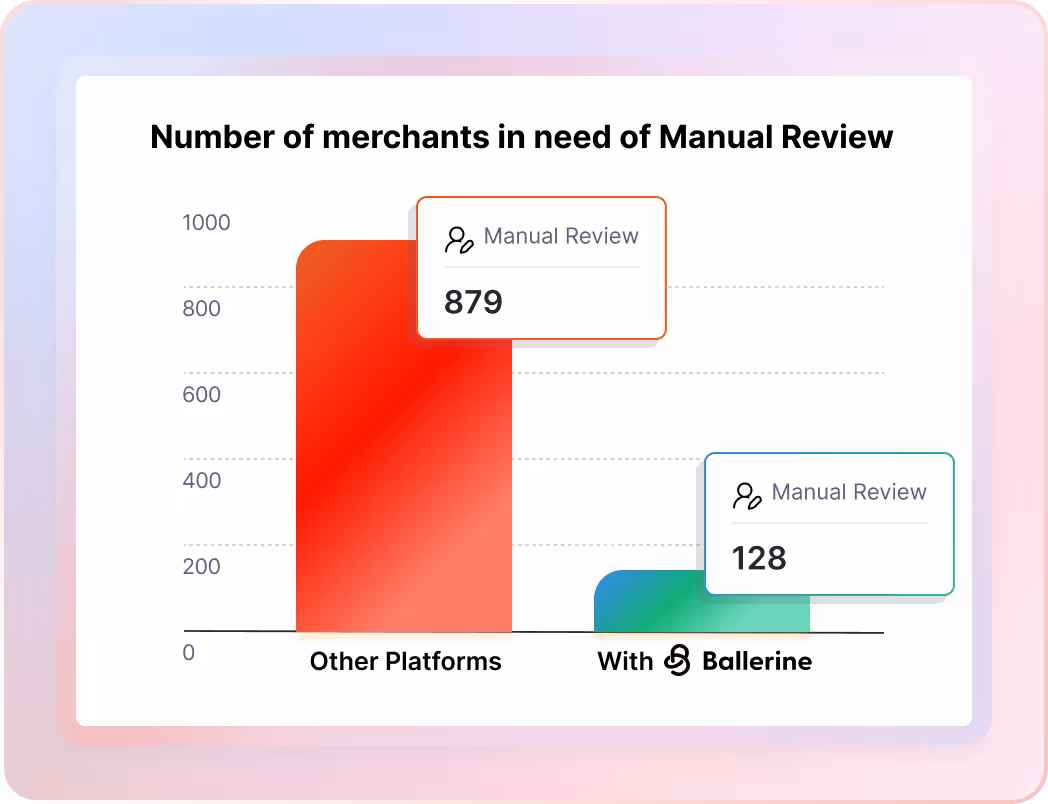 Ballerine’s AI agents assess merchants against your policies with clear, explainable evidence, reducing noise and keeping teams focused on the right merchants.