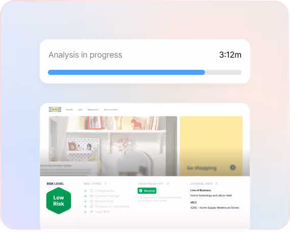 AI agents under your command let you take merchant underwriting risk management to a whole new level. Instantly identify risk, reduce manual work and turn fragmented data into confident decisions.